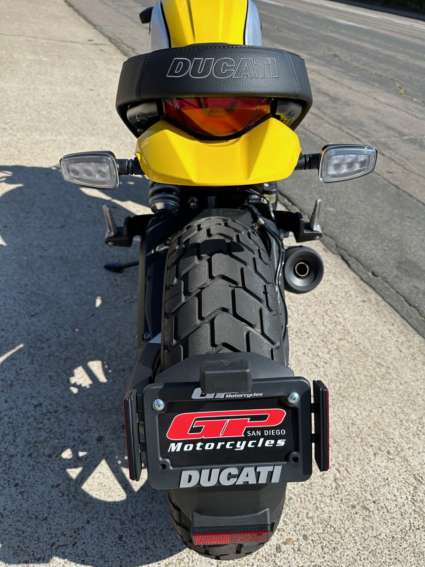 Demo model sale price $9495* *OAC using Ducati Financial Services Nonconformist, affordable and essential, the Ducati Scrambler is the perfect blend of tradition and innovation. The renewed Ducati Scrambler is more contemporary, more comfortable and safer, ensuring even more carefree 'Land of Joy' fun! Premium LED lighting, Headlight with glass lens and DRL. LED turn indicators, New selected gear indicator and fuel level. New handlebar switch controls. Hydraulic clutch control with adjustable lever. Dual-channel Bosch Cornering ABS. Cast Wheels with new aluminum 10-spoke wheels derived from the 1100. A brand new seat, flatter and comfortable for the rider and the passenger. Improved suspension set-up. New finishing touches to the engine: black cylinder heads and brushed aluminum fins.
