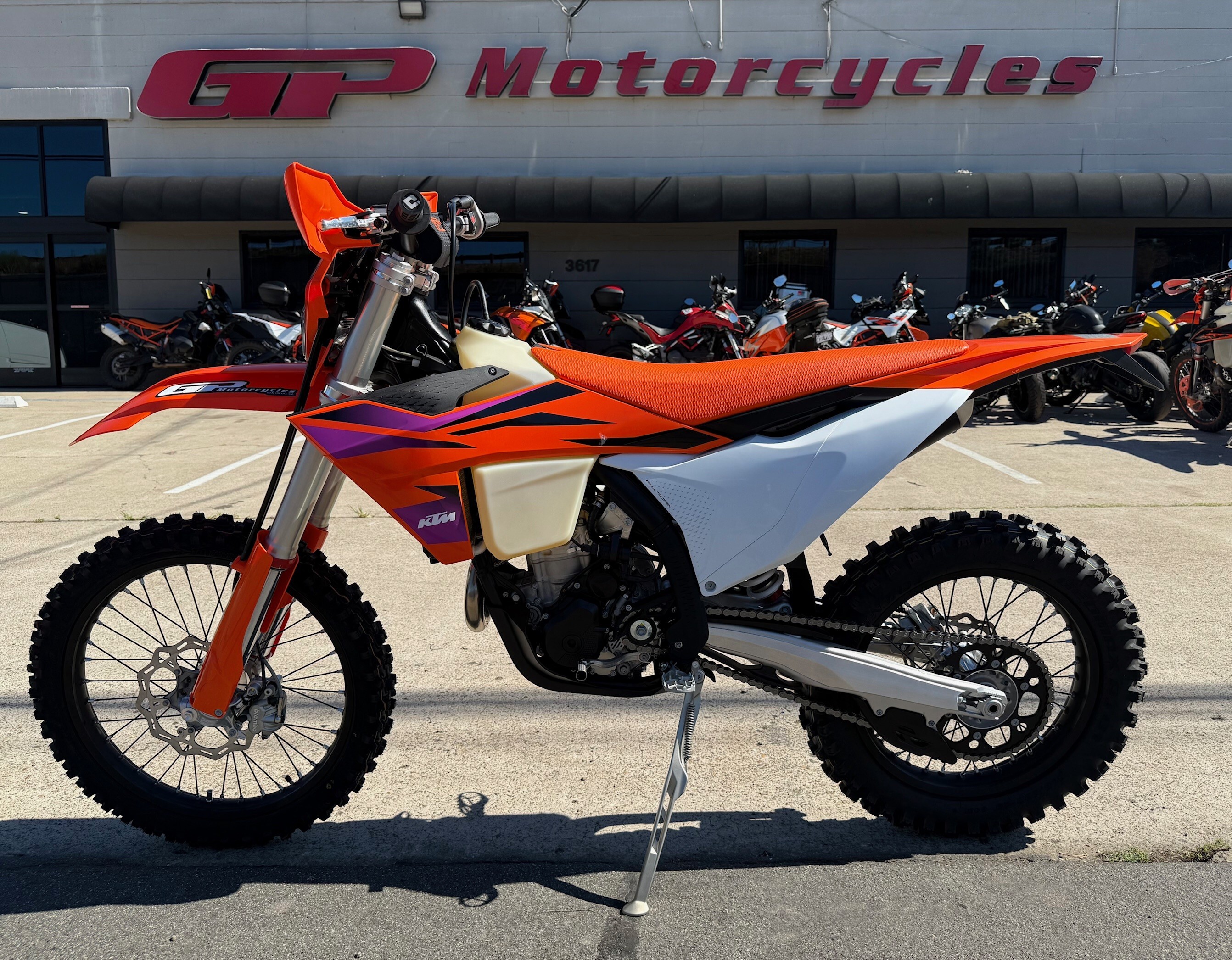 KTM is bringing back 50-state emissions (California green sticker) off-road models with the introduction of the new 2024 350 and 500 XW-F four-stroke off-roaders. In a nutshell, the XW-Fs are based on the new 450 XCF-W competition model but are emissions-compliant in all 50 states, including California. “The new XW-F models open up new ground for off-road riders thanks to 50-state off-highway compliant emissions and a USFS Approved spark arrestor as standard,” says KTM. In other words, the XW-Fs can be ridden legally on state and federal public lands year-round