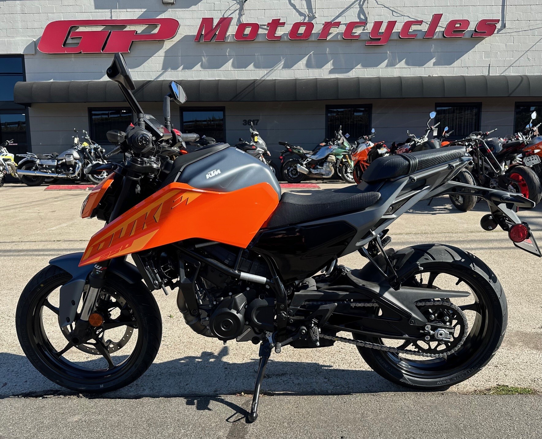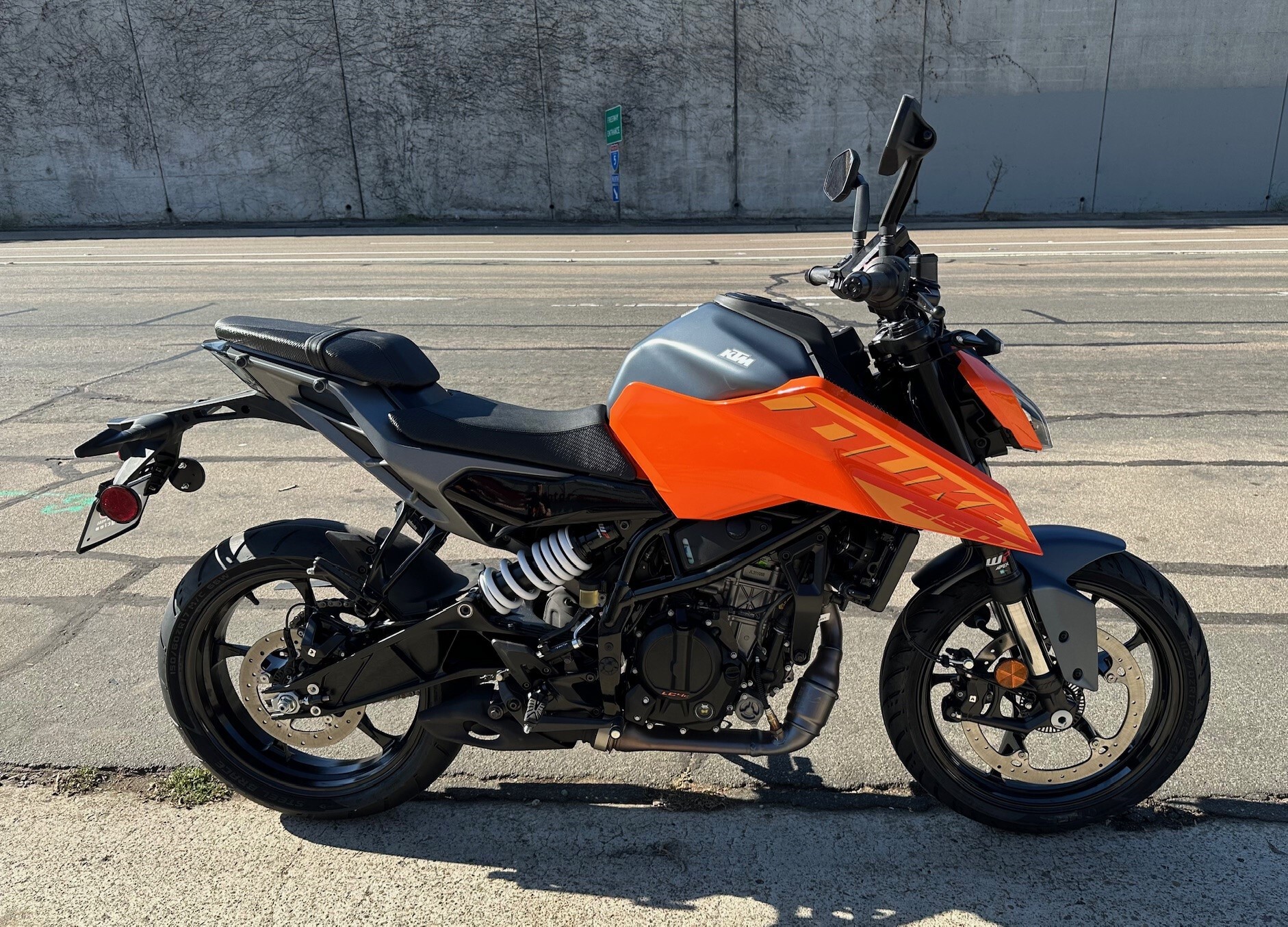 The KTM 250 DUKE flaunts with, a new 250 cc powerplant - this machine is 250% DUKE! Built with the same NAKED ethos as its bigger brethren, the 2024 KTM 250 DUKE boasts an all-new, muscled-up attitude, complete with a fresh new frame, suspension package, LED lights, riding tech, and street-ripping, turn-gripping aggression.