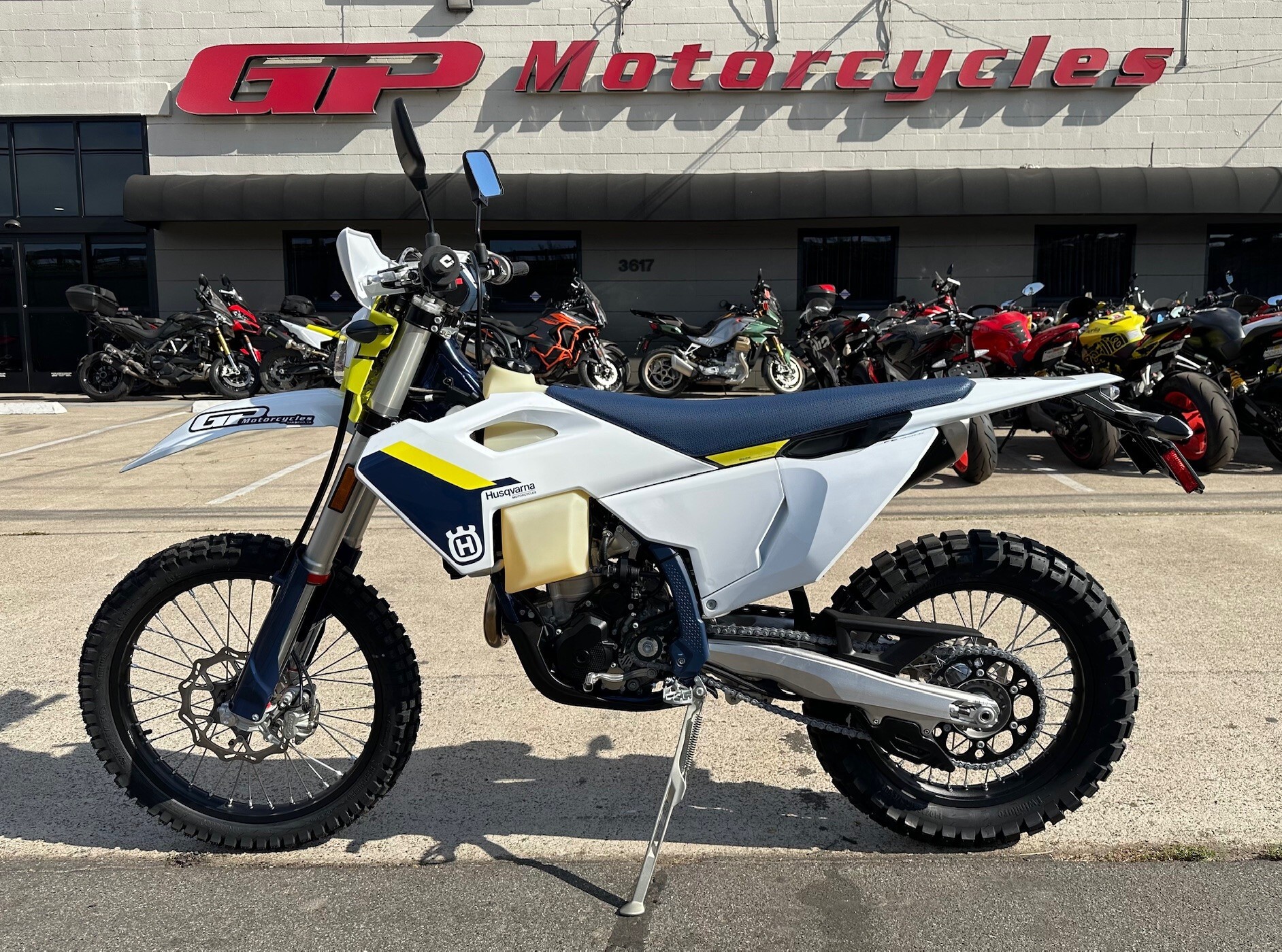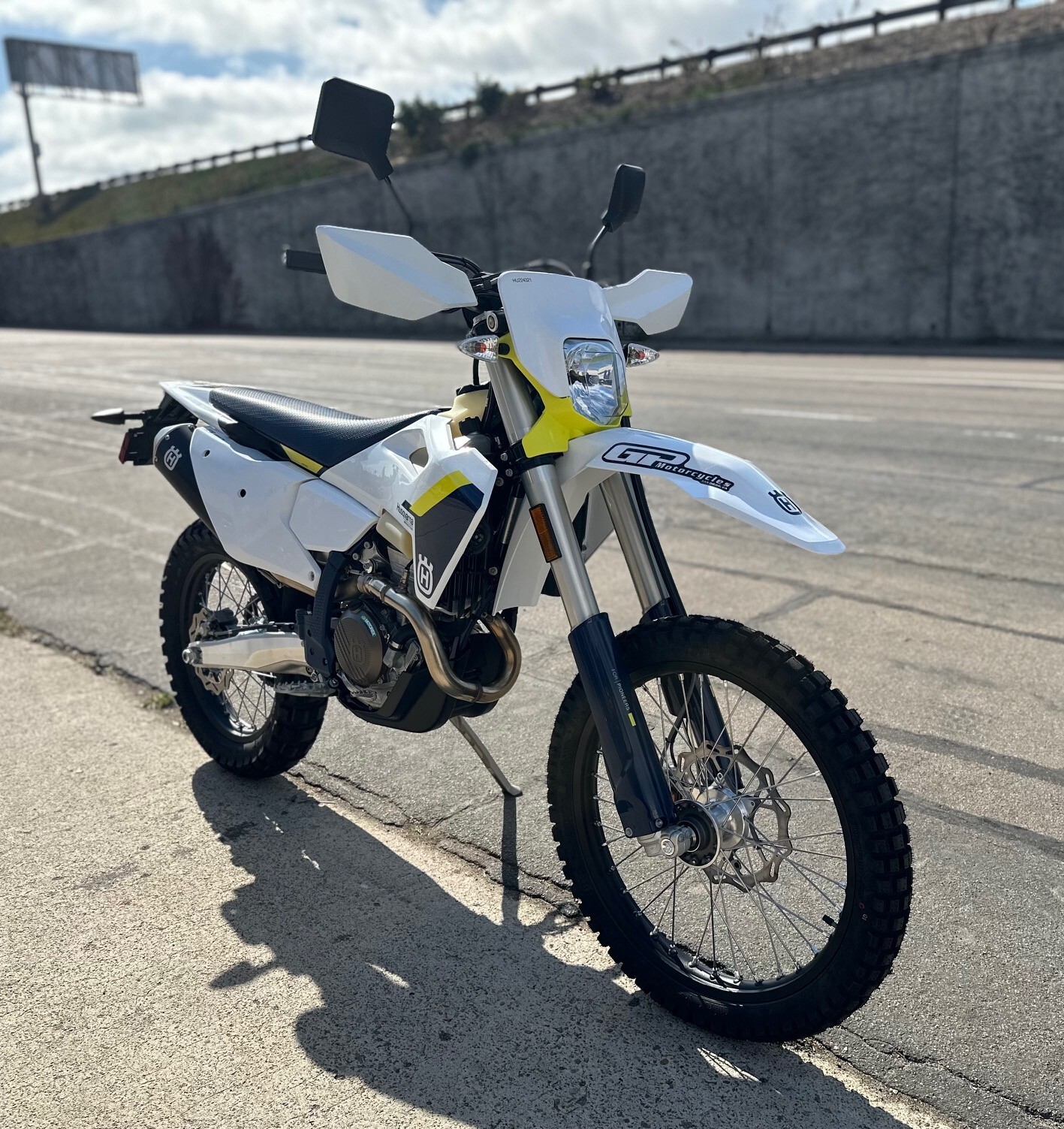 Striking a competitive balance between power and handling, the FE 350s is undoubtedly the most versatile dual-sport machine on the market. Powered by a DOHC engine, which is positioned in the frame to centralize mass, the overall handling and performance of the FE 350s is unrivalled. Complete with new, Swedish-inspired graphics and assembled with premium components throughout, the FE 350s is the model of choice.