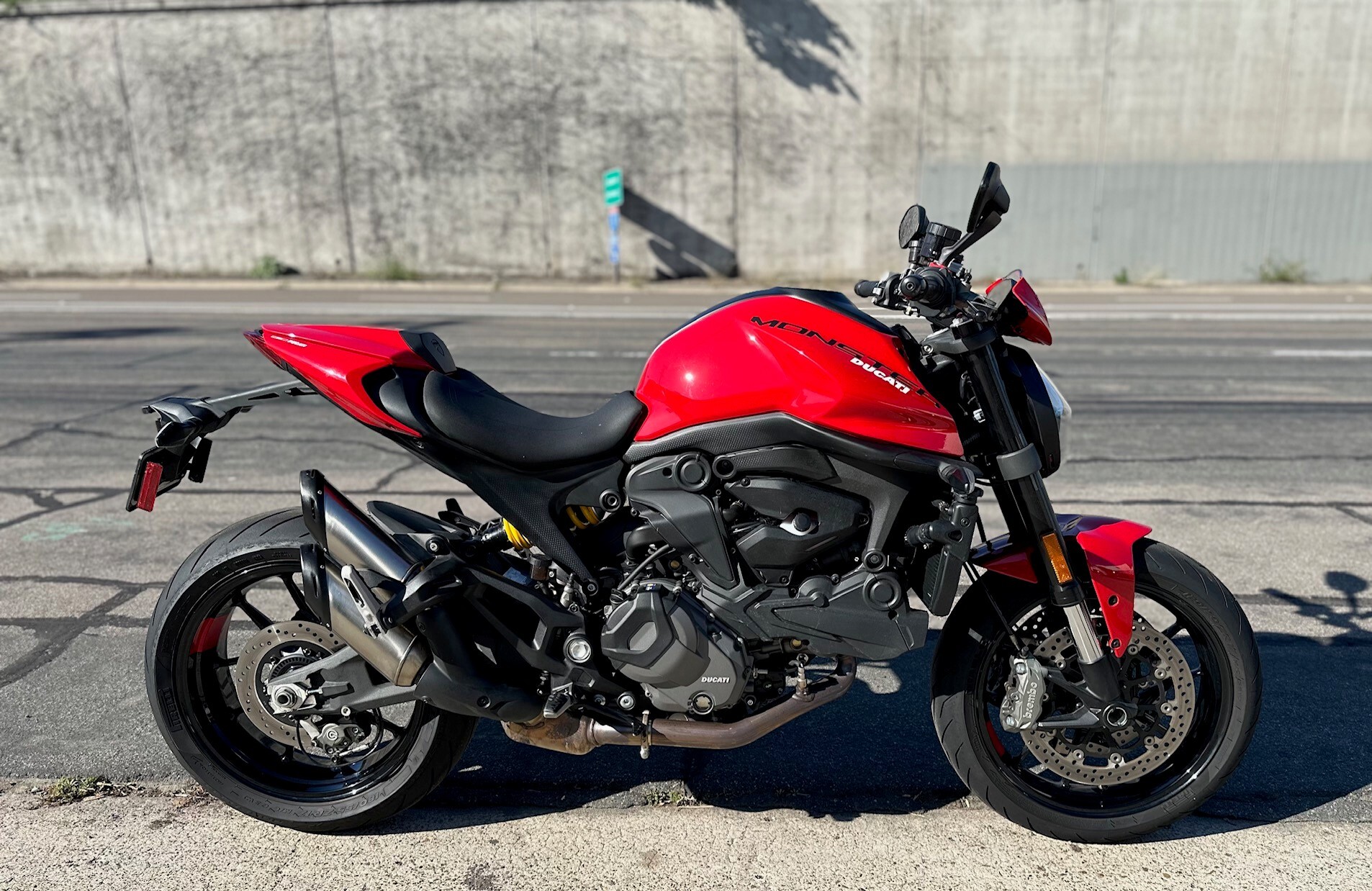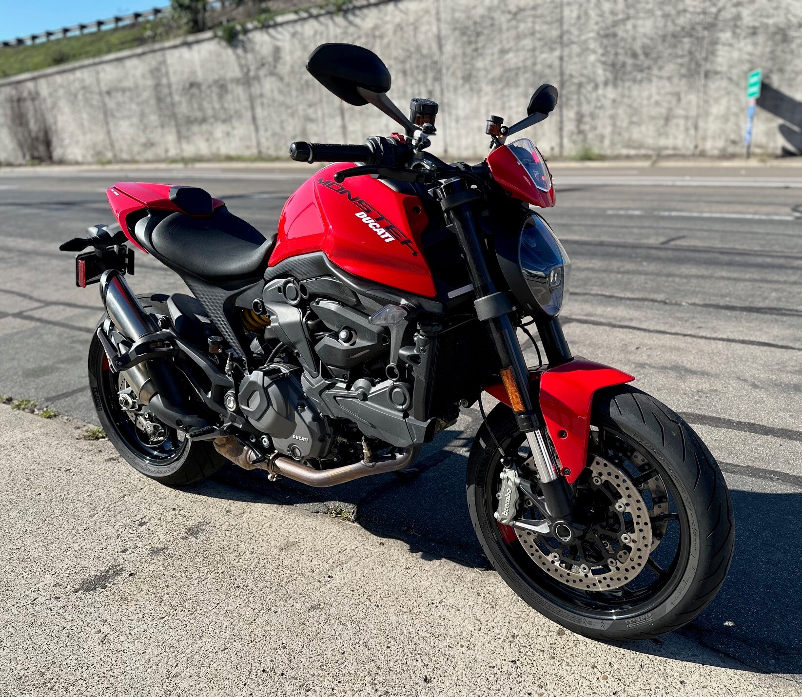 This pre-owned Monster Plus only has 2294 miles. The original owner traded this bike in on a different Ducati. Save over new. Just Fun! All the essence of Ducati in a modern and contemporary motorcycle. Here is the new Monster in the most compact, essential and lightest possible form. A project that reappropriates the original 1993 concepts with a superbike derived frame, in aluminum, which helps to reduce the weight to just 366 lb dry, - 39.6 lb less than the Monster 821. Narrow sides and a design characterized by simple, clean lines make the bike compact and essential: an engine, a seat, the tank, the handlebars. Everything you need to have fun, nothing more.
