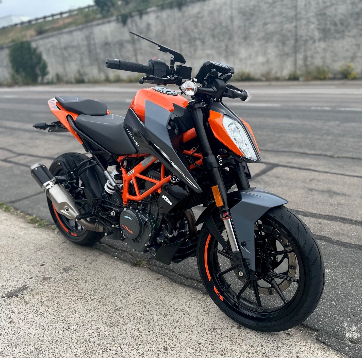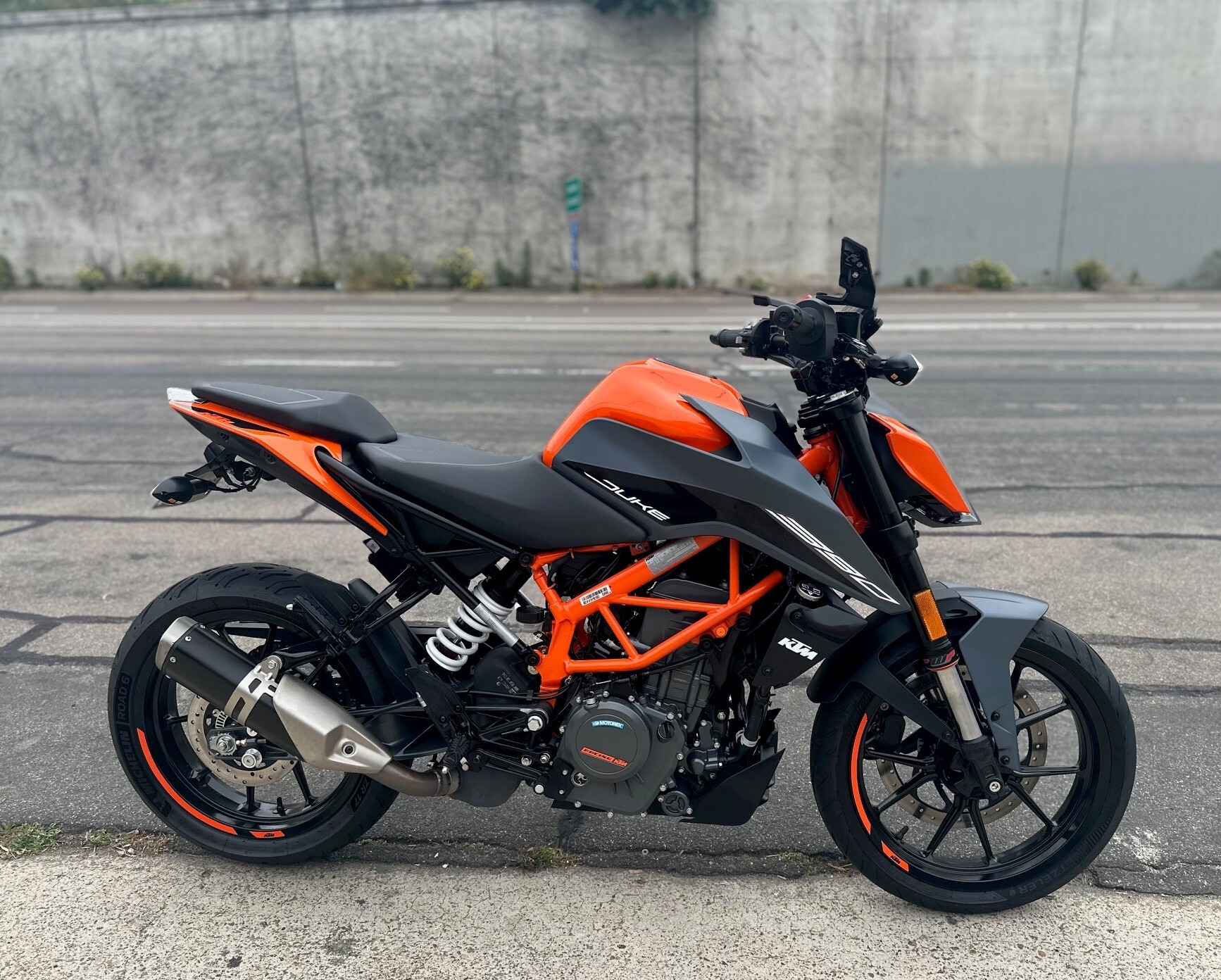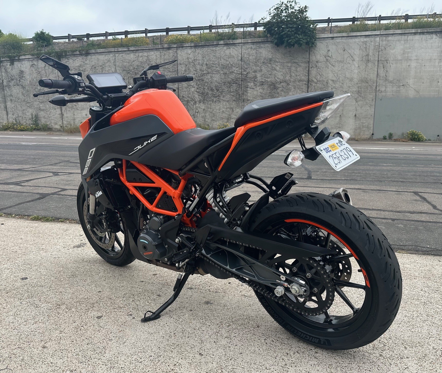 This is a nice used 390 Duke. Mostly stock other than blade mirrors and a tail tidy. The KTM 390 DUKE is a pure example of what draws so many to the thrill of street motorcycling. This Corner Rocket maximizes enjoyment and user value, taking the honors wherever nimble handling counts. Light as a feather, powerful and packed with state-of-the-art technology, it guarantees a thrilling ride, whether you're fighting your way through the urban jungle or carving your name into a forest of bends.