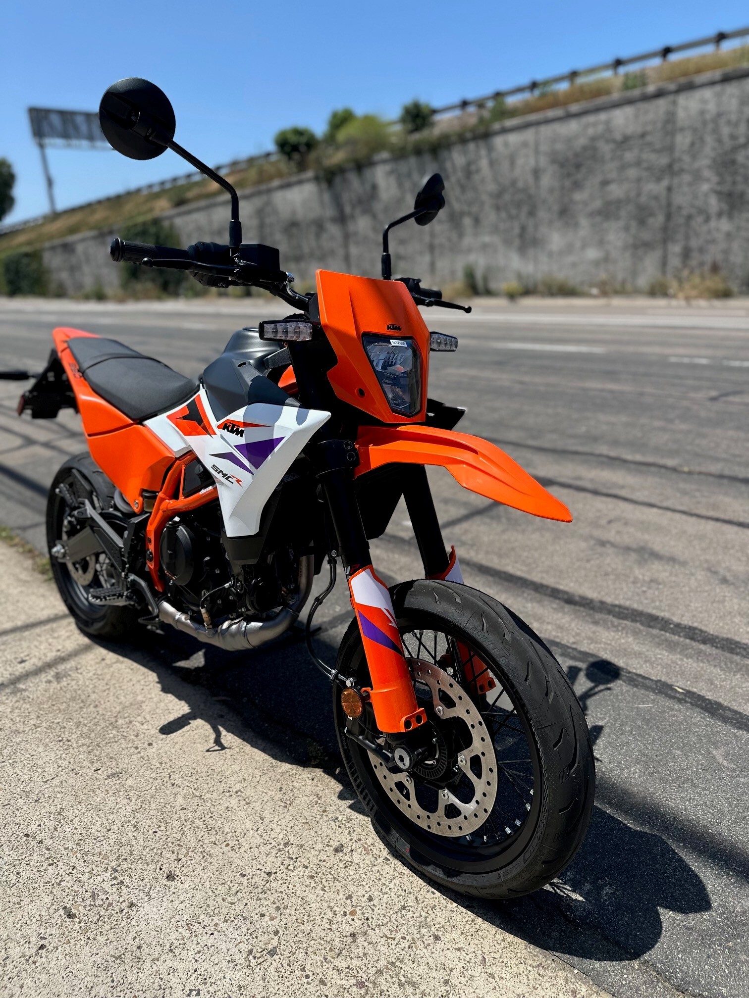 Sliding at the apex to join the KTM SuperMotard army in the middle-weight battalion, the KTM 390 SMC R brings unlimited fun to the masses. Just like its KTM 690 SMC R brethren, it is engineered to dominate the asphalt - as well as the odd dirt track - with ease. Base MSRP: $5,499.00 *Plus freight: $575 and Import Duty Surcharge: $550