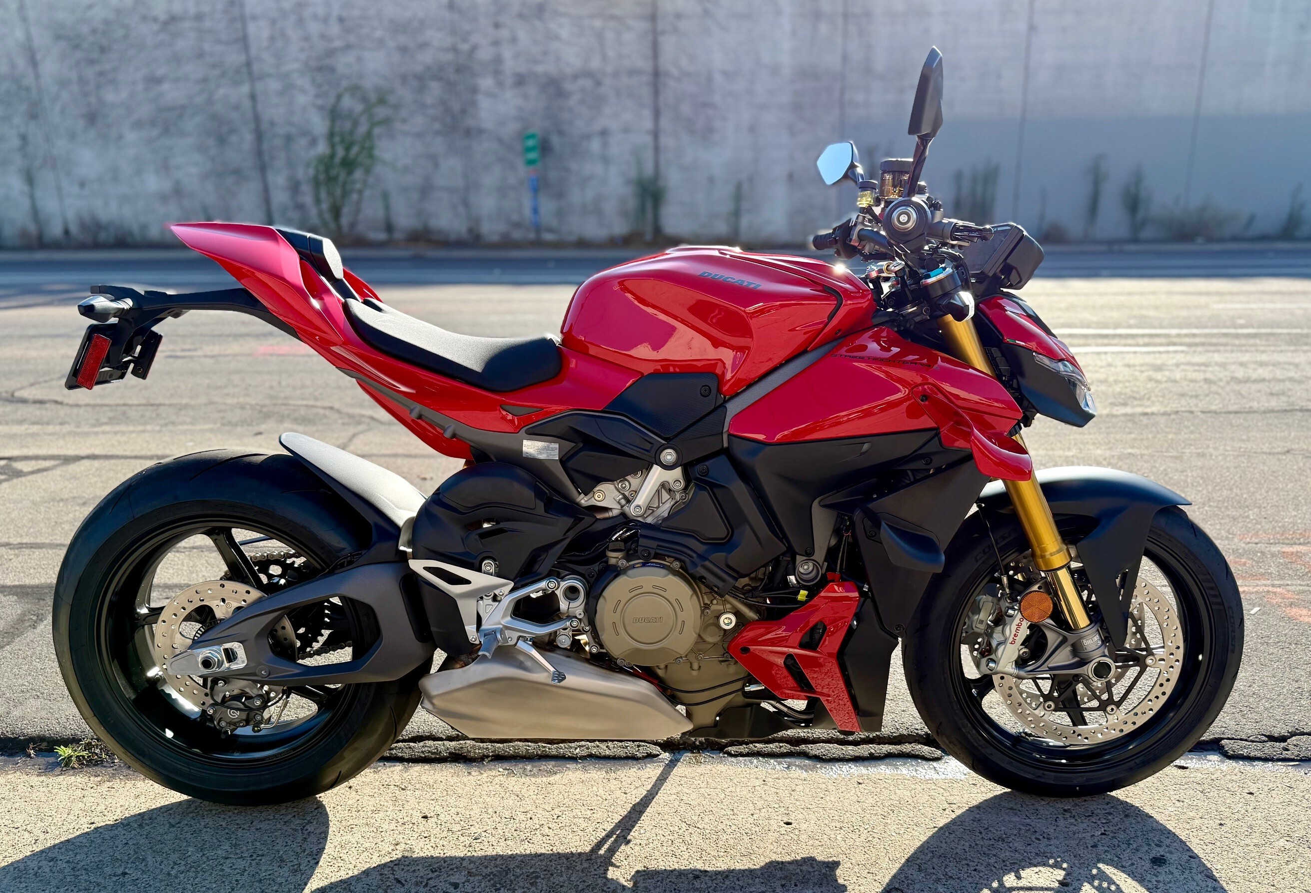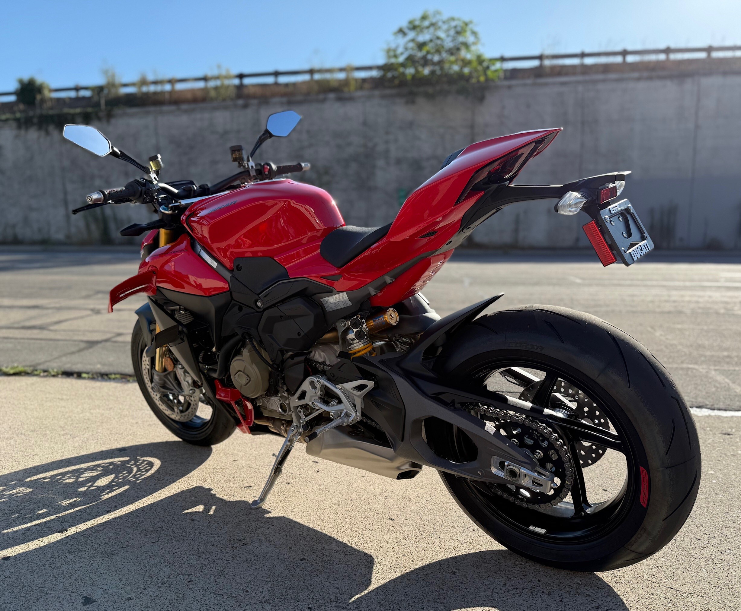The new Streetfighter V4 is the ultimate expression of the Fight Formula, applied to the best ever Panigale. Like never before, the Streetfighter inherits all the innovation and performance of the Ducati superbike, while retaining its unmistakable character. Powerful and precise on track, exciting and enjoyable on the road, the Streetfighter V4 promises both feeling and control for an unparalleled riding experience. As never before, the new Streetfighter V4 is the new Panigale V4 stripped of its fairings, a magical formula that blends new solutions in terms of its design, aerodynamics, ergonomics, chassis and electronics.