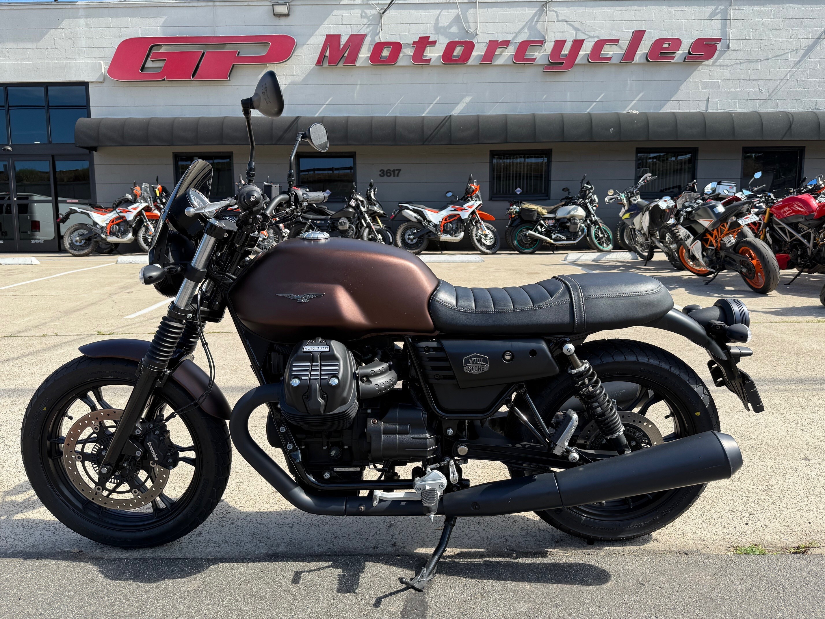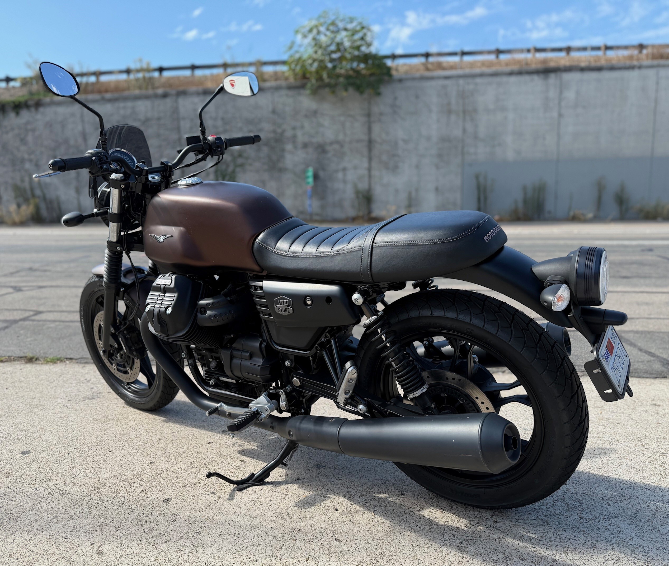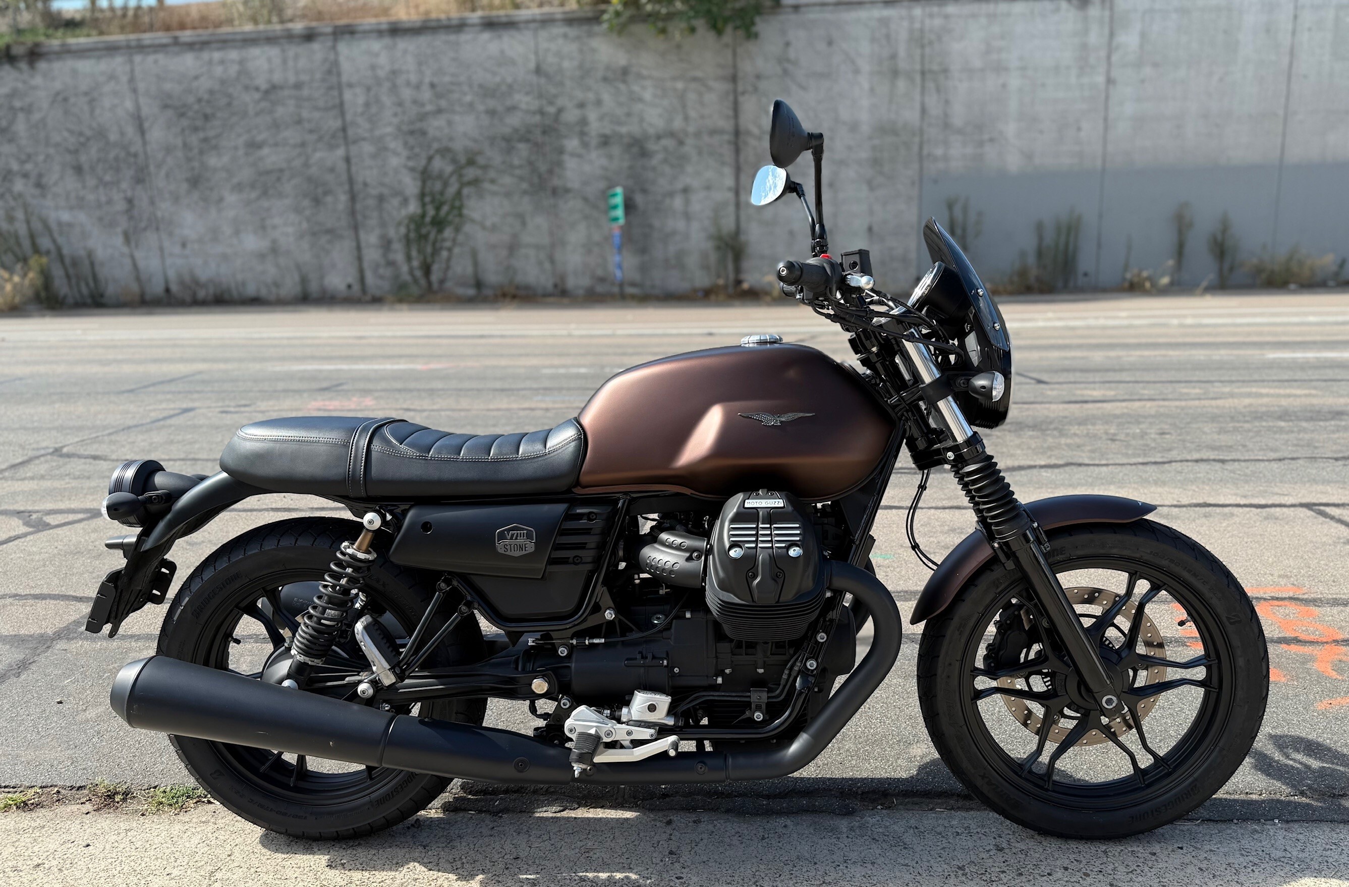 This excellent condition V7 III Stone Night Pack in Bronzo Levigato (bronze) just got brand new Bridgestone tires. NIGHT THRILL - Genuine Italian, V-Twin, air cooled, pushrod OHV, shaft drive, OLD SCHOOL modernized classic with ABS and TC. Only 3950 miles.