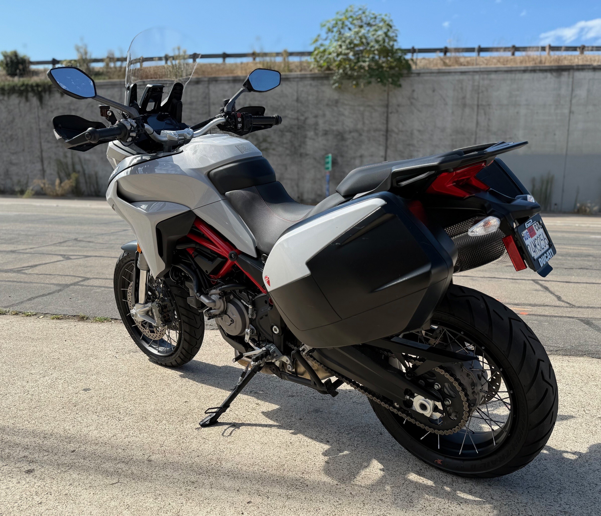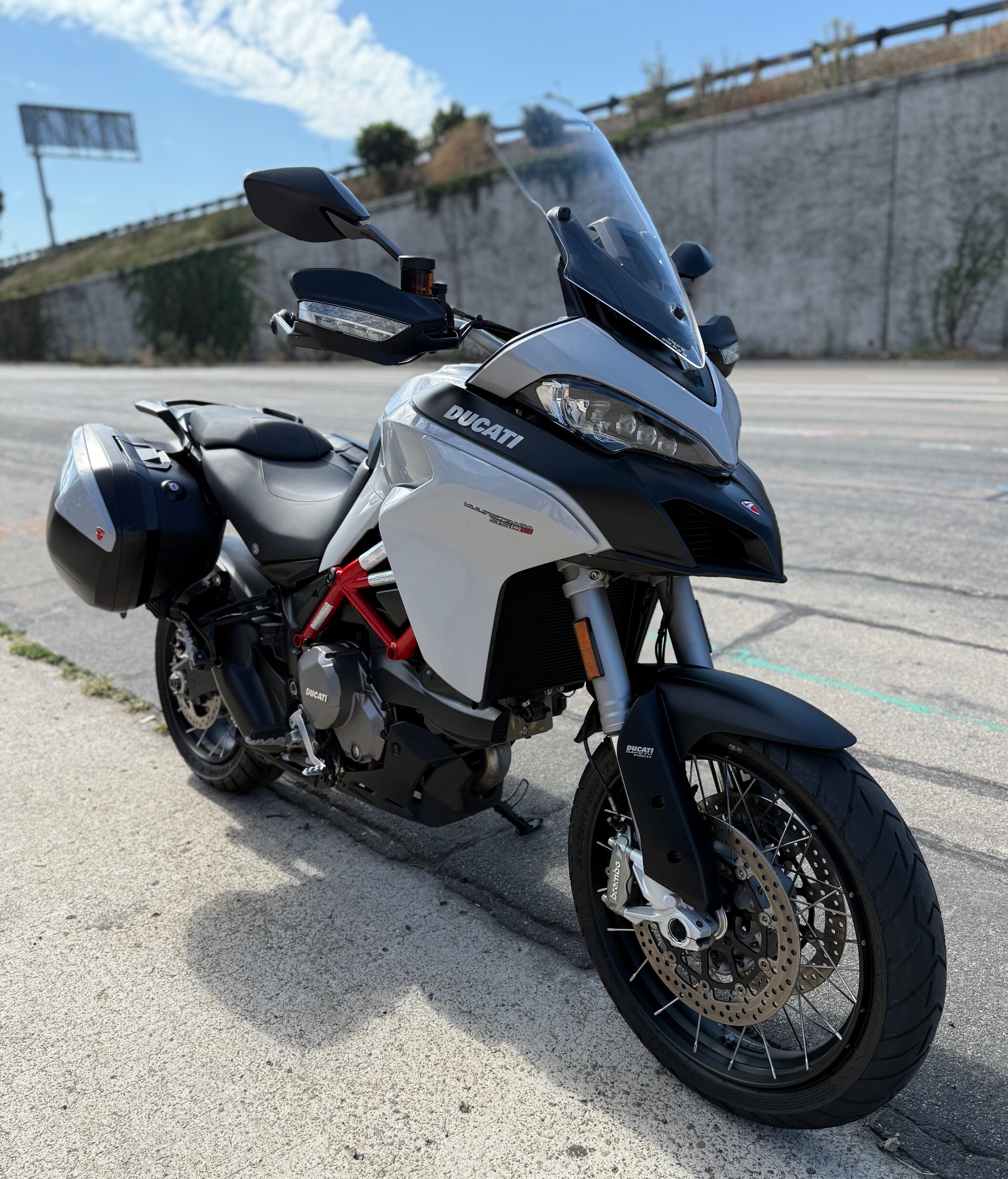This is a one owner (bought new at GP Motorcycles) 2019 Ducati Multistrada 950 S. This bike is a well-rounded adventure-touring motorcycle featuring the 113 hp 937 L-Twin engine, a 19-inch front wheel for agility, and It offers excellent handling, a broad spread of torque for versatile riding, and technological features like TFT Dash, and and quick shifter. The 950 S is a sophisticated yet practical motorcycle praised for its balance of stability and agility, making it suitable for long-distance touring and winding roads. This bike has the added Touring Pack: Includes panniers (side bags), heated grips, and a center stand