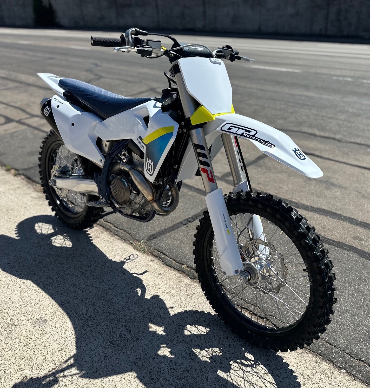 Widely praised as the best performing 250 cc 4-stroke on the market, the FC 250 retains its position at the head of the field. A compact and powerful engine is housed inside in an updated chromium molybdenum frame that is lower in weight and offers improved chassis flex. Updates to the WP suspension and rear shock linkage ensures the outstanding agility of the FC 250 is enhanced further for 2025. Its new bodywork offers refined ergonomics for effortless movement and control, with striking white and blue graphics applied using in-mold technology for an outstanding and long-lasting finish.