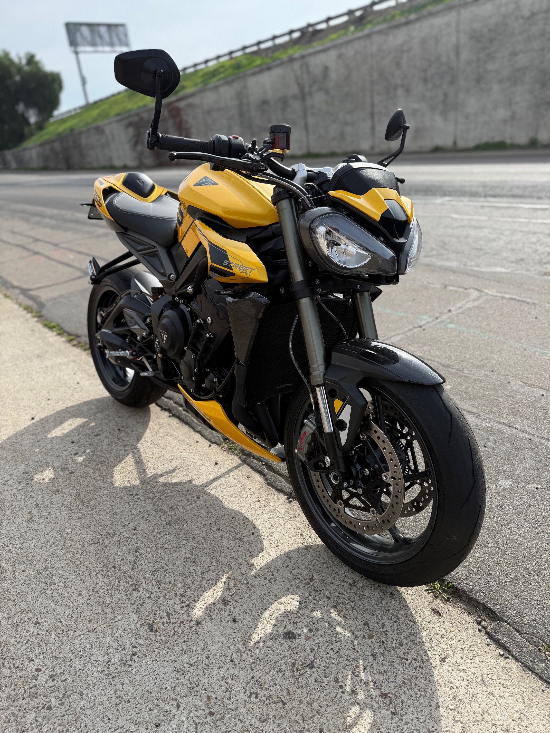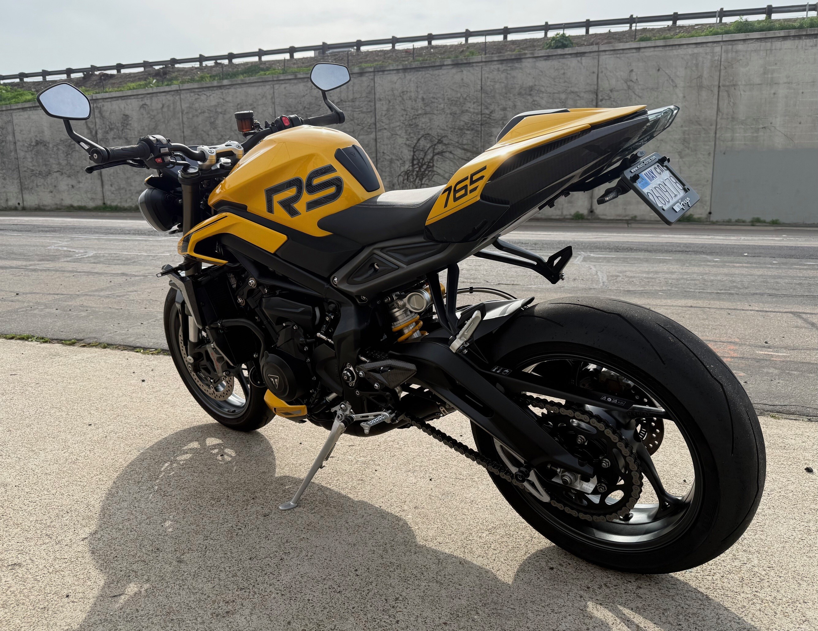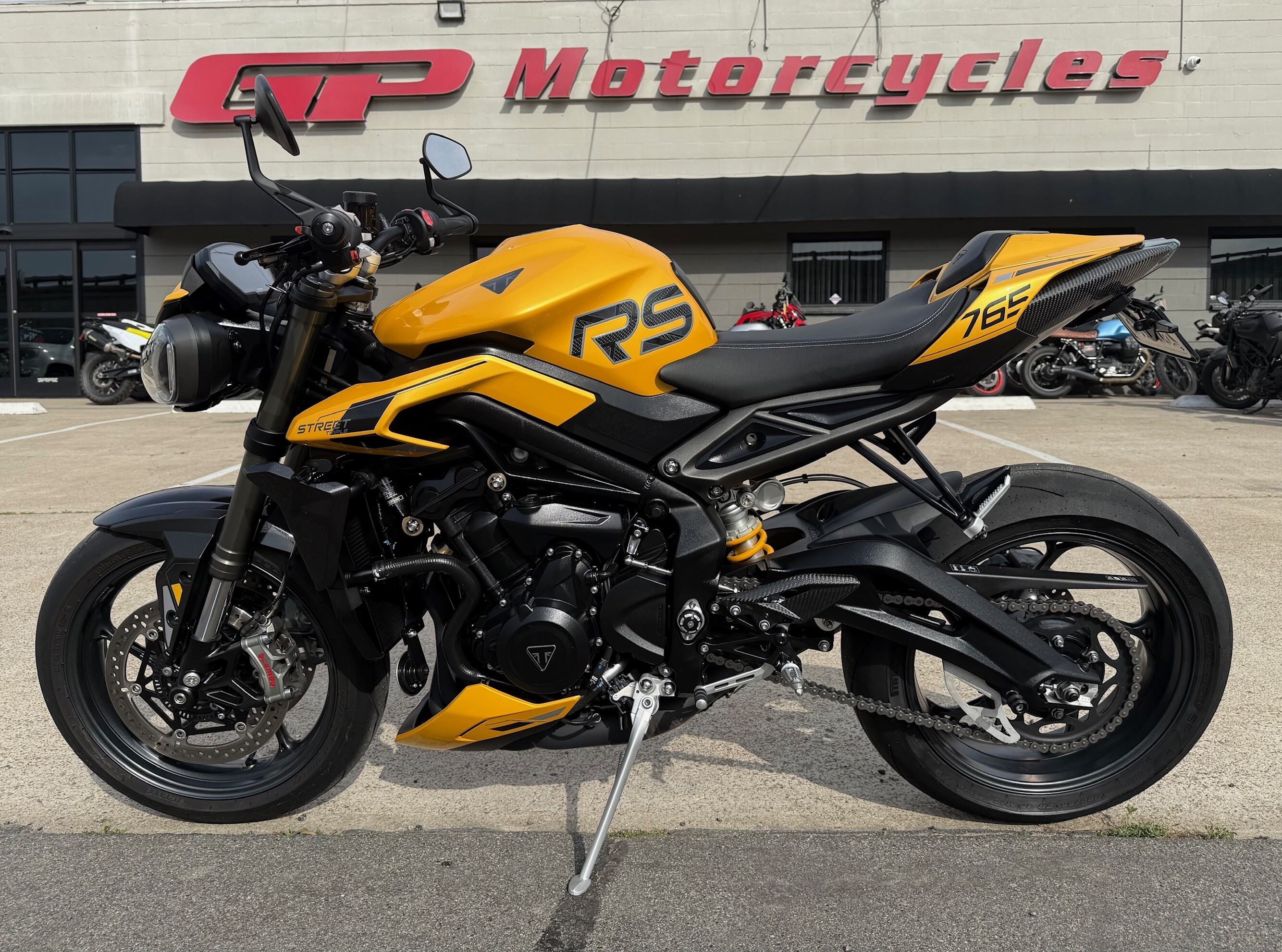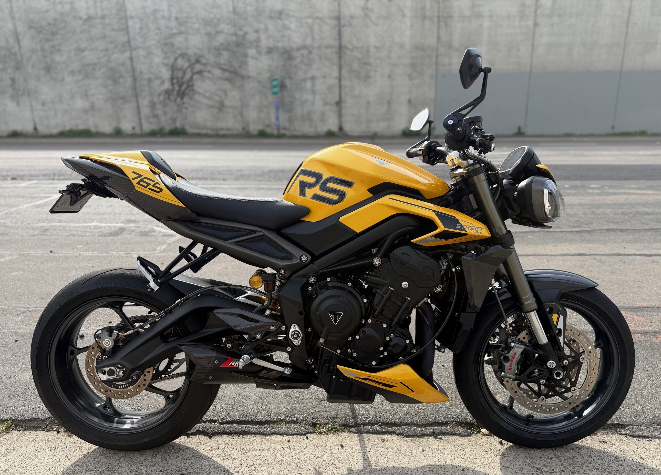 This bike is a one owner well taken care of 2024 Triumph Street Triple 765 RS. The bike features a 765cc inline-three engine with 128 HP, Brembo Stylema brakes, fully adjustable Showa Big Piston Forks and Öhlins rear shock, a 5-inch TFT dash, IMU-enabled cornering ABS/traction control, and a standard up/down quickshifter, delivering sharp performance with enhanced electronics and premium components. This bike has added tail tidy, small rear LED signals, carbon parts and great sounding Zard.