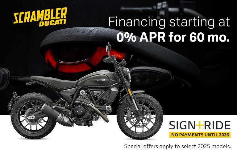 Offer available on select 2024 and 2025 models to highly qualified customers on approved credit by Ducati Financial Services from August 1 - 31, 2025.