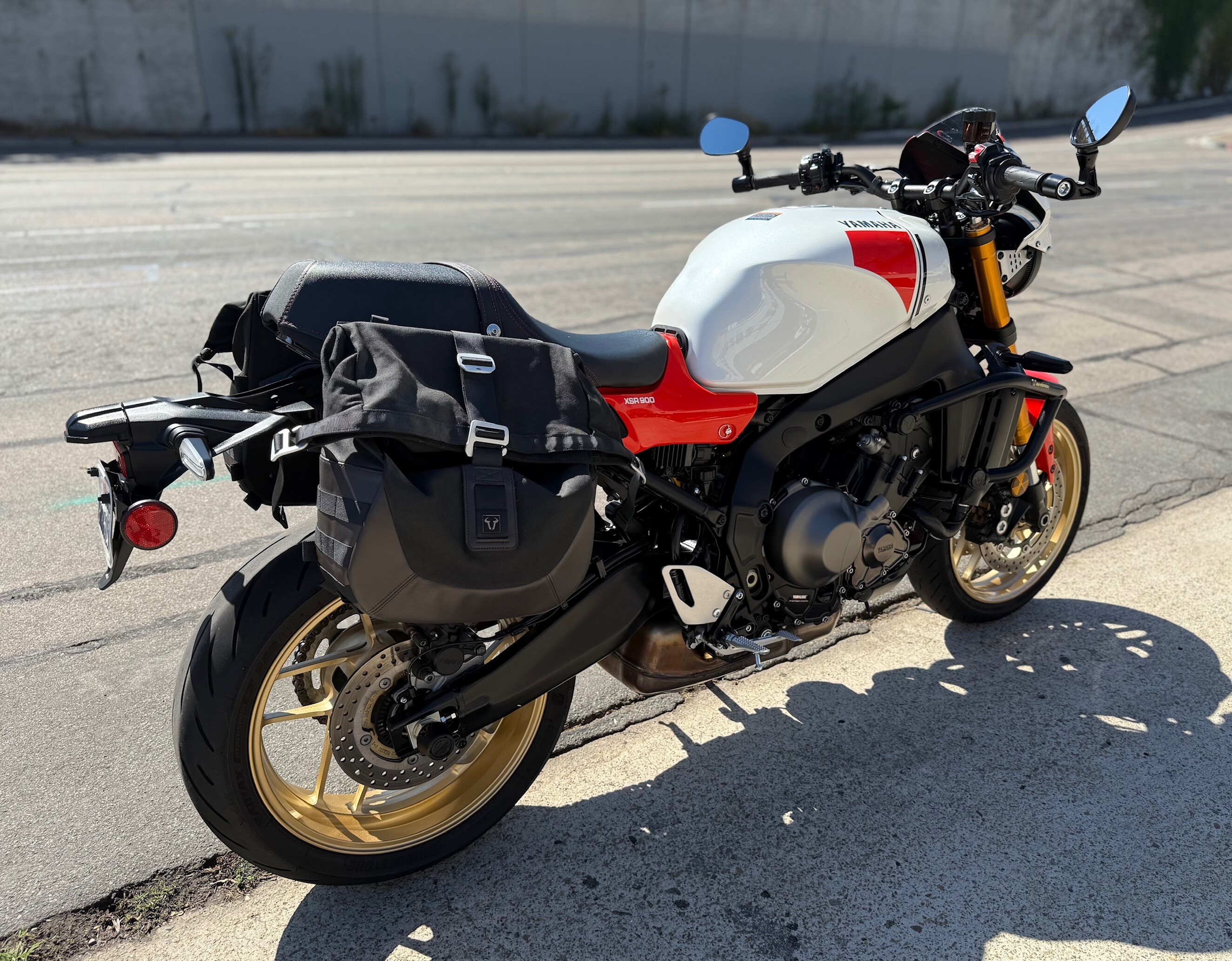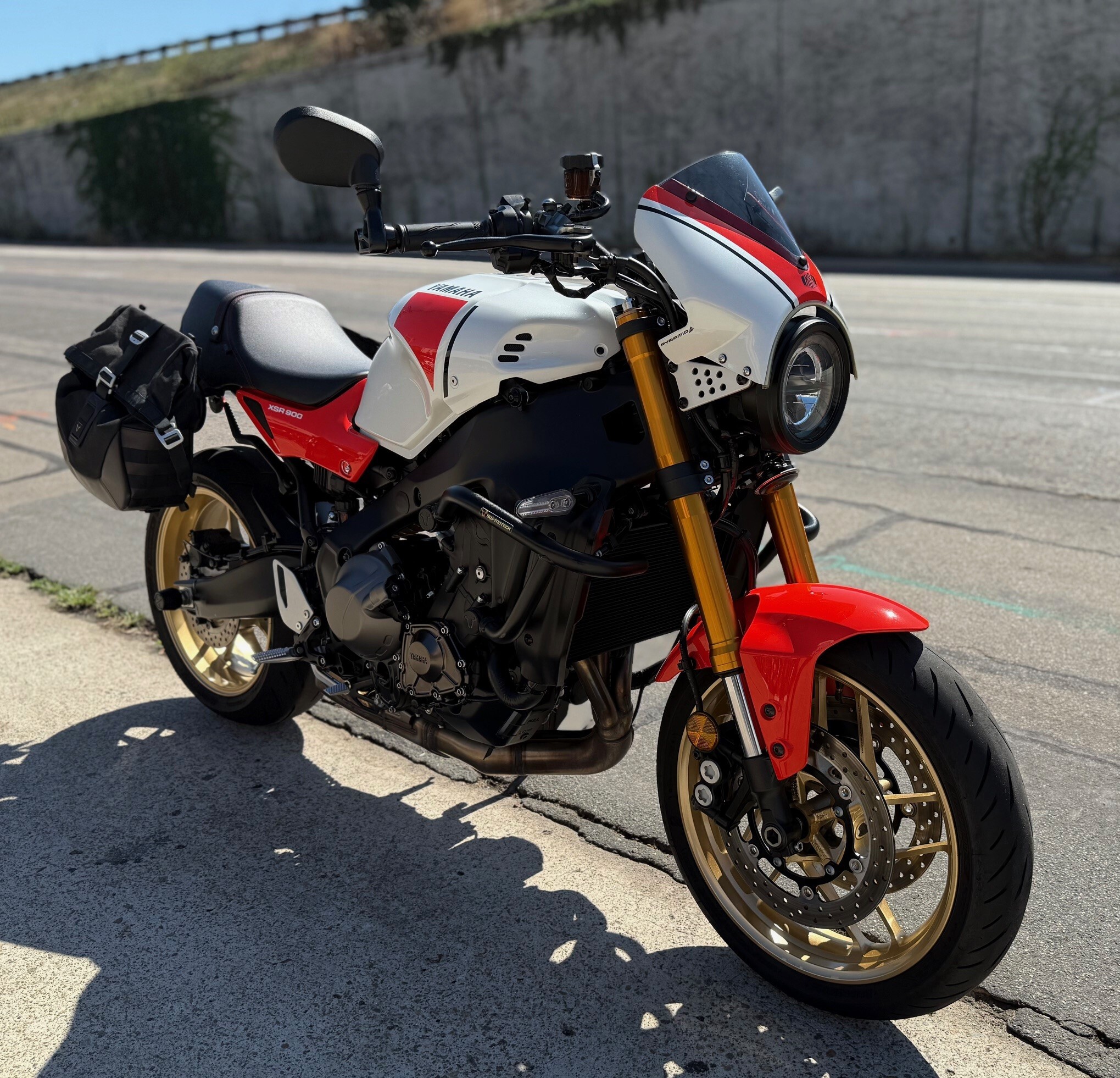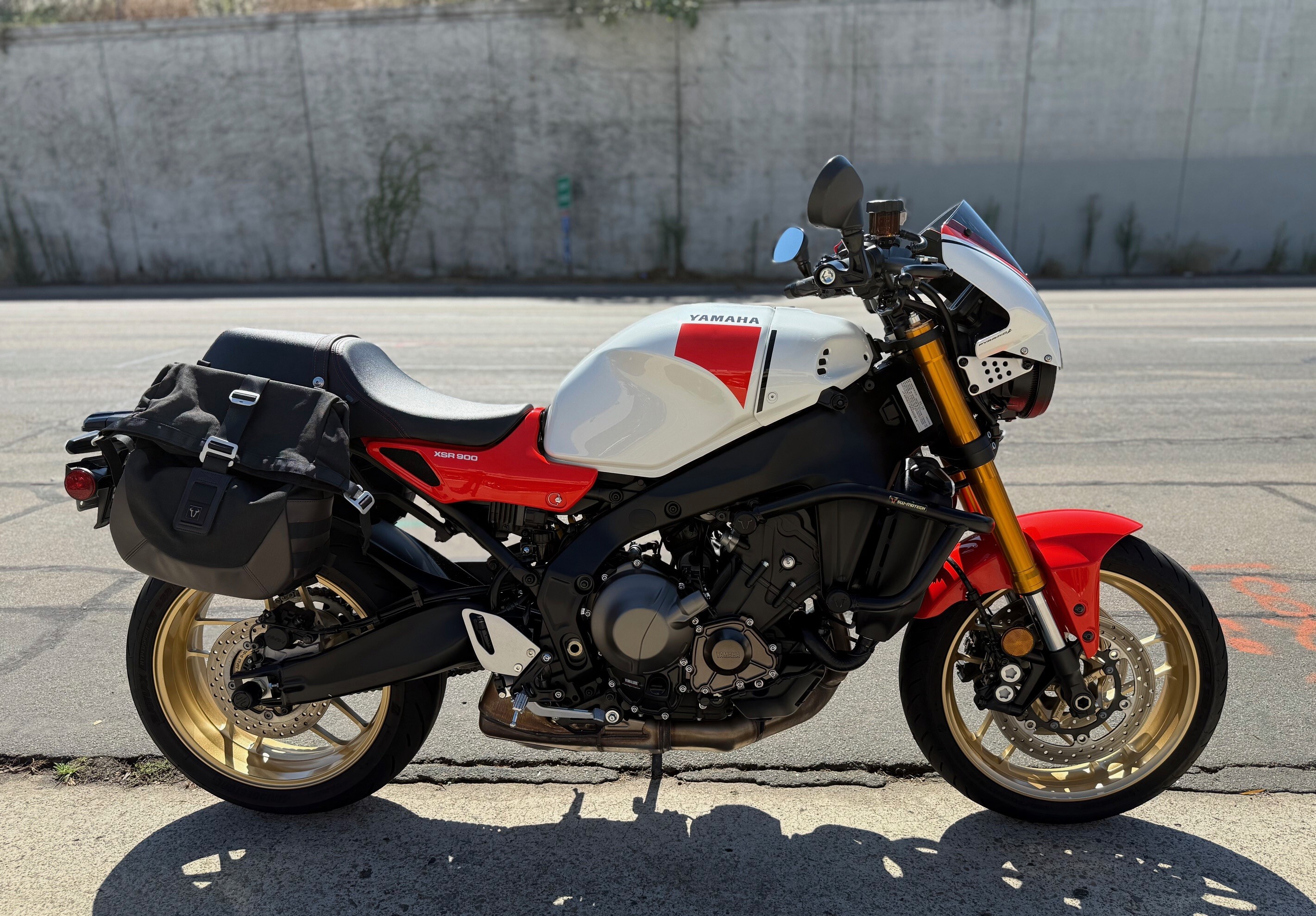 Impressive engine, great suspension, confidence-inspiring handling, and a compelling package overall defines the XSR 900. This bike has some added accessories including: SW Motech side bags and engine protectors, rear axle slider and Pyramid upper fairing, Great do it all bike now that is outfitted with luggage and a little bit of wind protection.