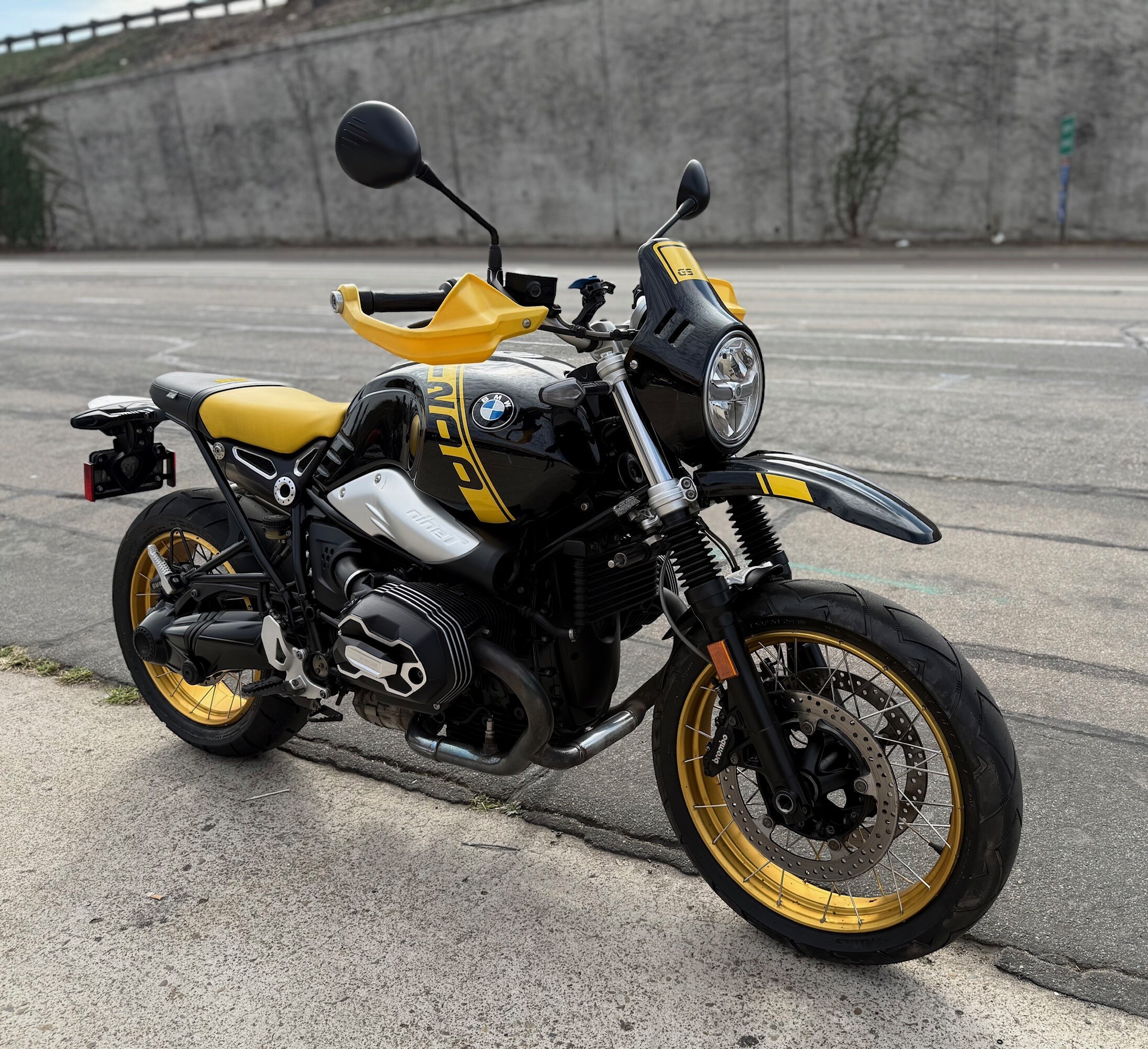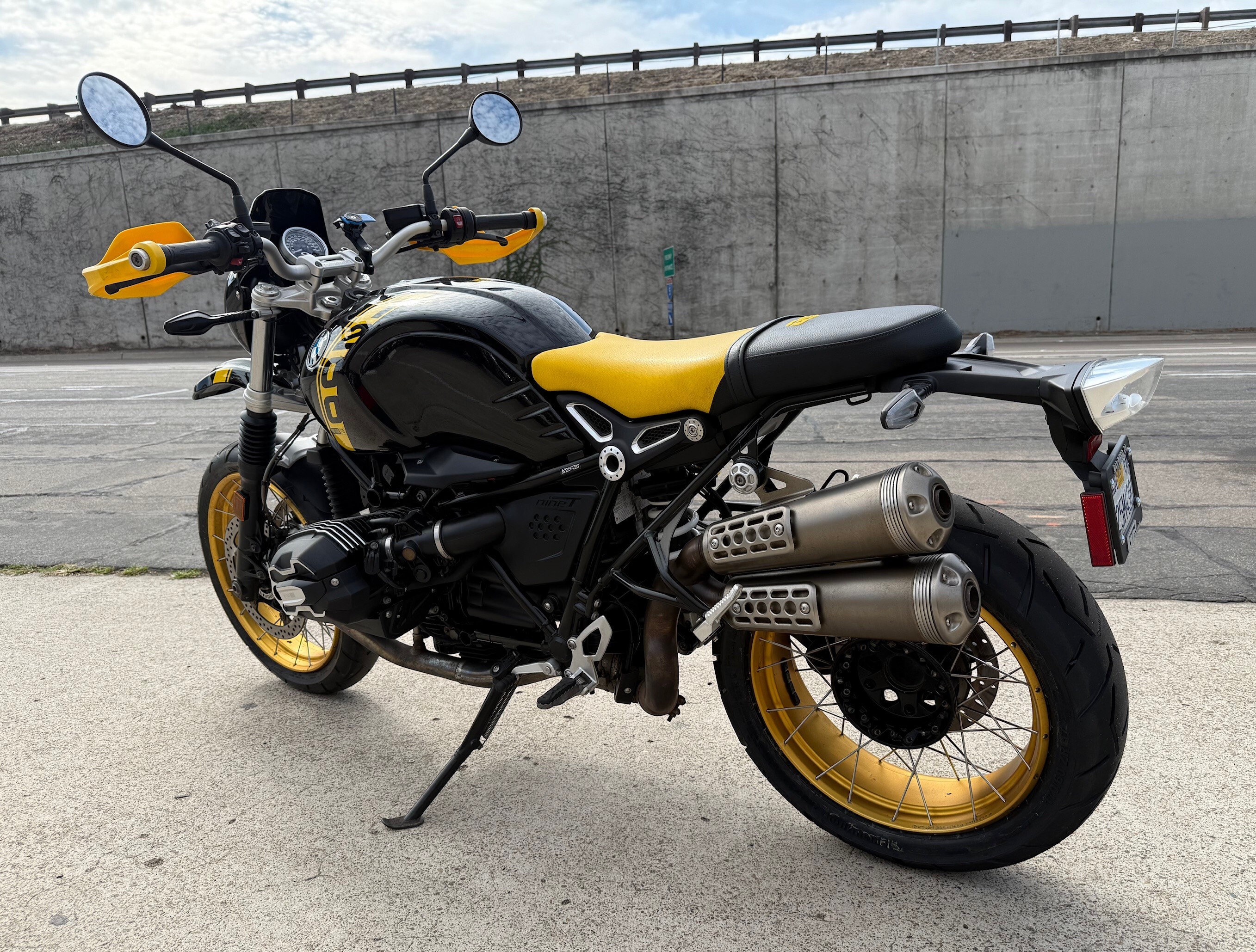 This is a very nice 2021 BMW R nineT Urban G/S 40 Years GS Edition. The R NineT Urban is a retro-style motorcycle with a black and yellow "Bumblebee" paint scheme, honoring the original BMW R 100 GS. It features a 1,170cc flat-twin engine, a raised exhaust and unique "Option 719" milled parts like cylinder head covers and seat brackets, in addition to a 2021 model year refresh that included LED lighting, new suspension, and a USB port.