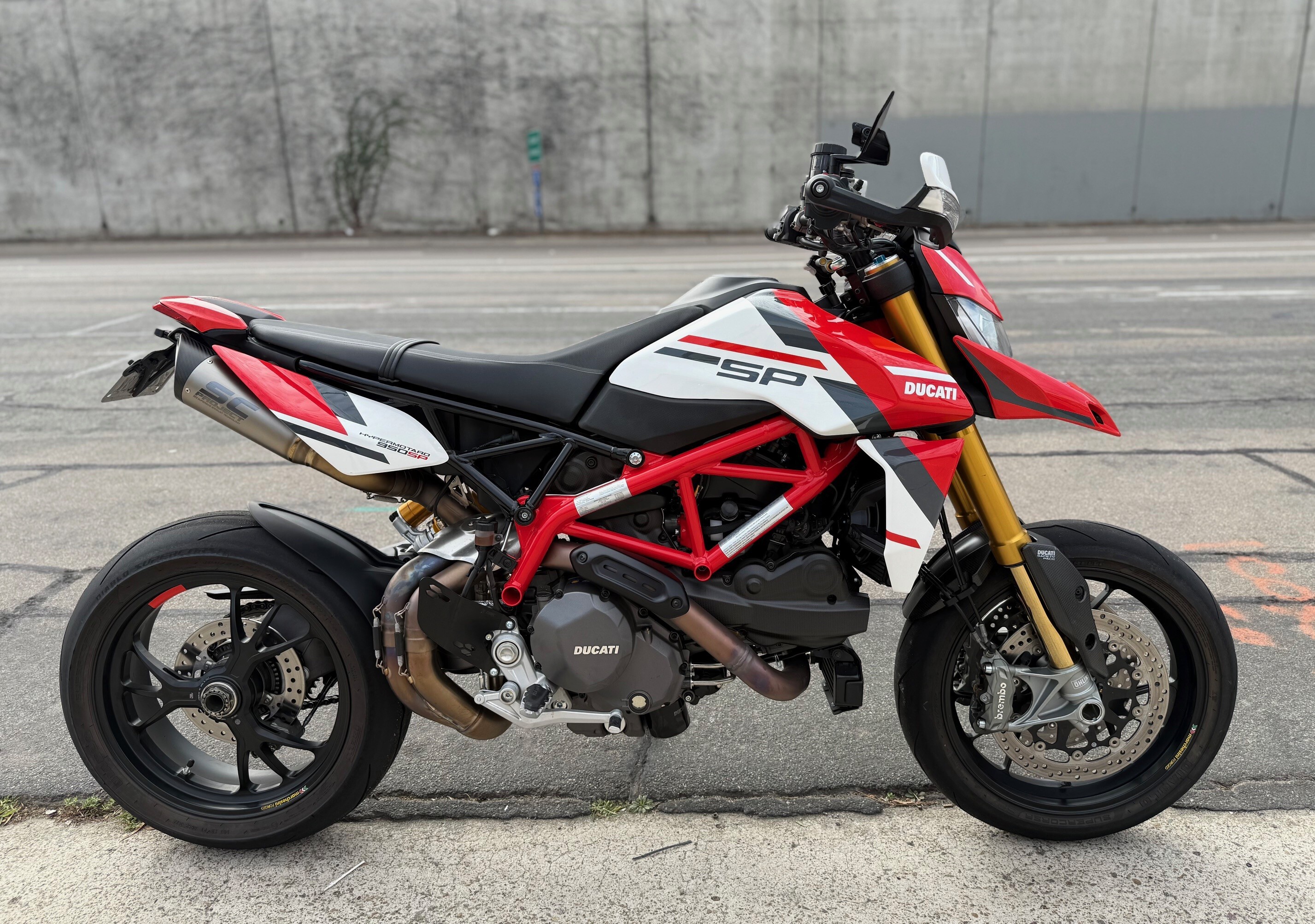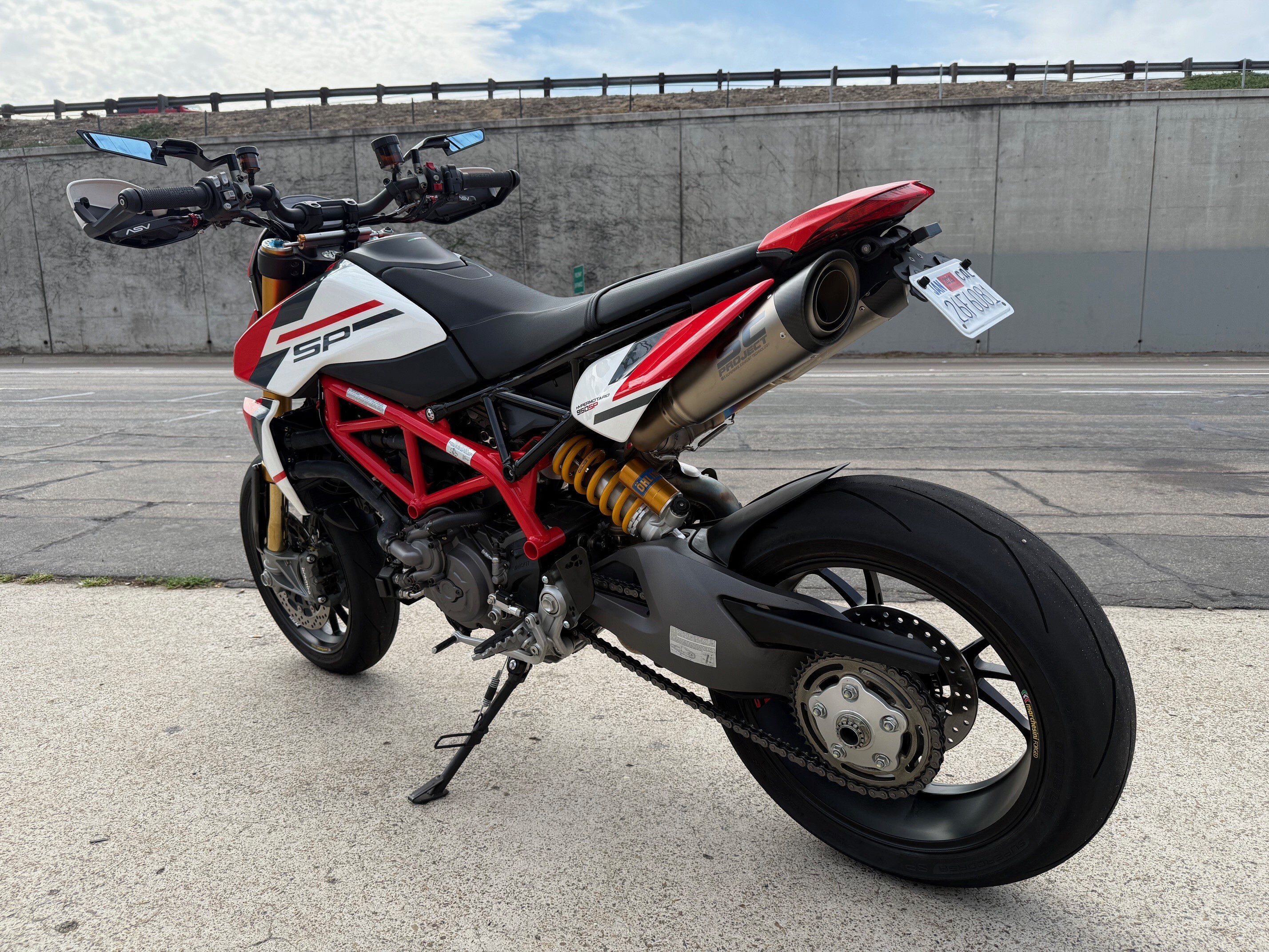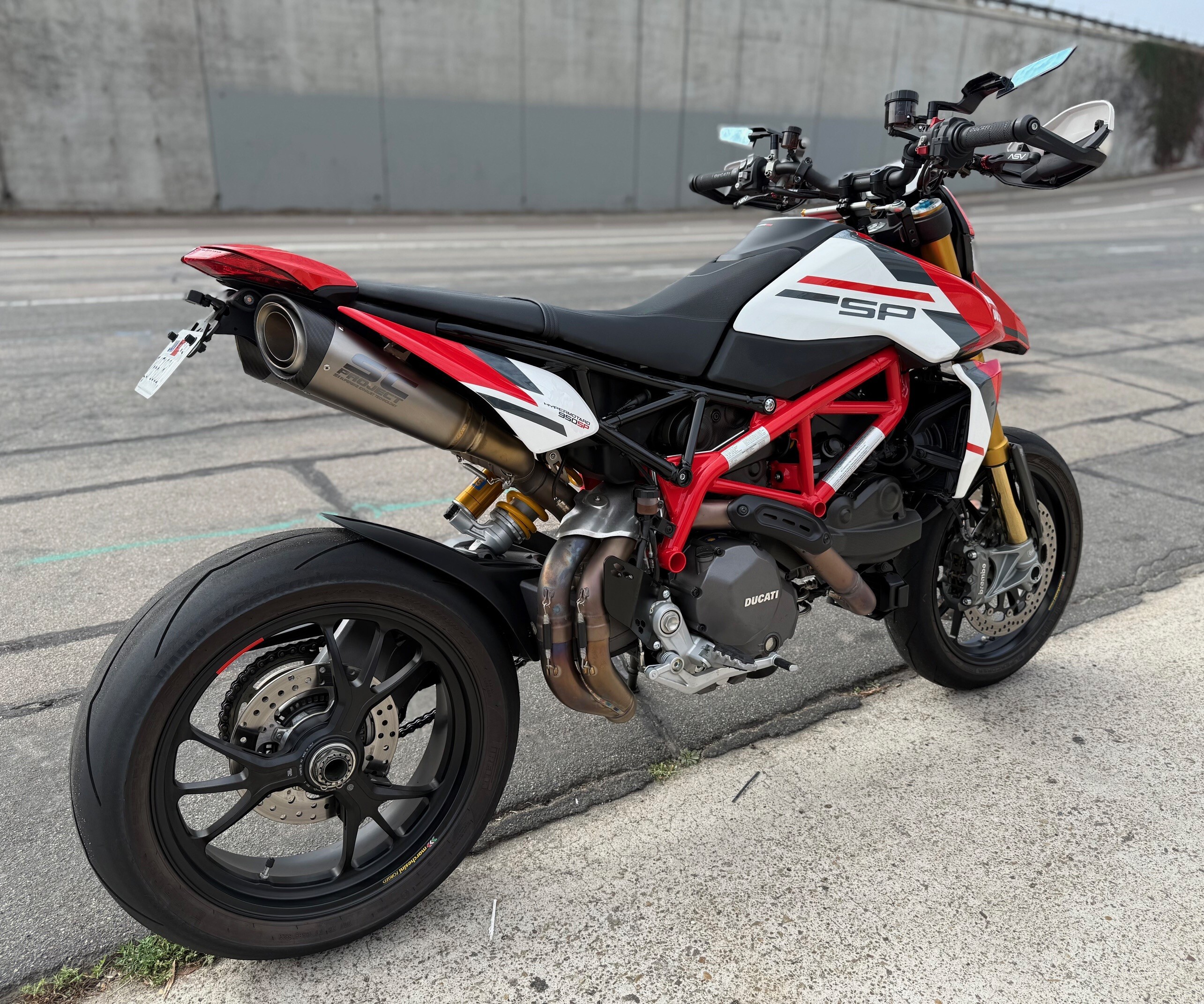 Discover the thrill of riding with this pristine 2023 Ducati Hypermotard 950 SP, meticulously maintained by its single owner. This stunning bike features a series of premium upgrades, including a tail tidy with LED signals, SC Projects SC-1 exhaust, Ohlins steering dampener, aluminum heel guards, and stylish Rizoma blade mirrors. With oil and radiator guards in place, this Hypermotard looks as good as new and is ready to deliver an unparalleled riding experience. Its exhilarating low-end torque, helmet-forward seating position, and long-travel suspension make it equally adept at handling your daily commute and weekend escapades. As an SP version, this model showcases a racing-inspired livery, enhanced with an up/down quickshifter, forged Marchesini wheels, and upgraded Öhlins suspension at both front and rear. Additionally, carbon fiber accents on the mudguard and timing belt covers not only enhance aesthetics but also reduce weight, optimizing performance. This bike is the embodiment of performance and style, offering both agility in tight corners and stability on open roads.