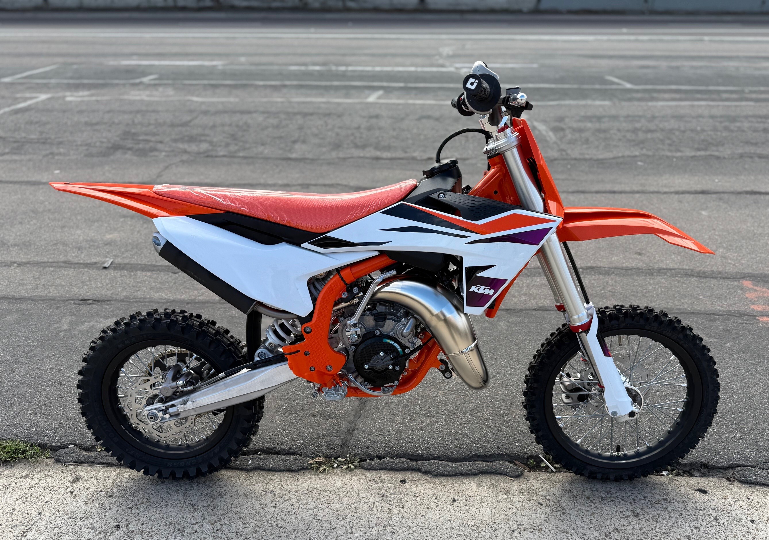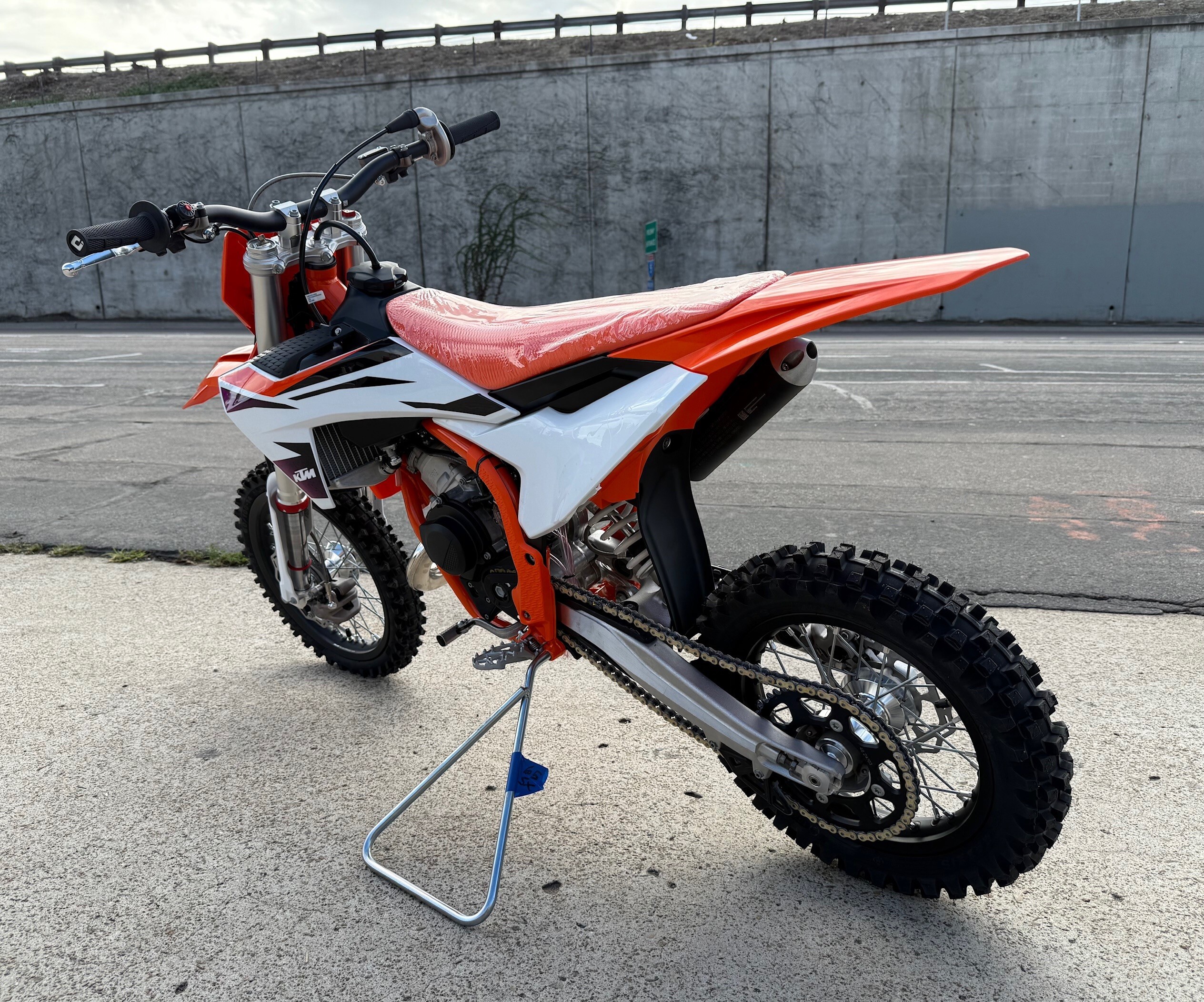 Embark on an exhilarating journey with the KTM 65 SX, the ultimate entry-level dirt bike designed for young riders eager to experience speed, adventure, and the thrill of learning. The bike features a robust steel frame that supports a powerful engine, enhanced by the latest WP XACT AER fork and WP XACT monoshock, guaranteeing excellent handling and comfort. With its emphasis on reliability, durability, and a READY TO RACE spirit, the KTM 65 SX seamlessly combines fun and functionality, making it the perfect choice for both young novice riders and the young at heart!